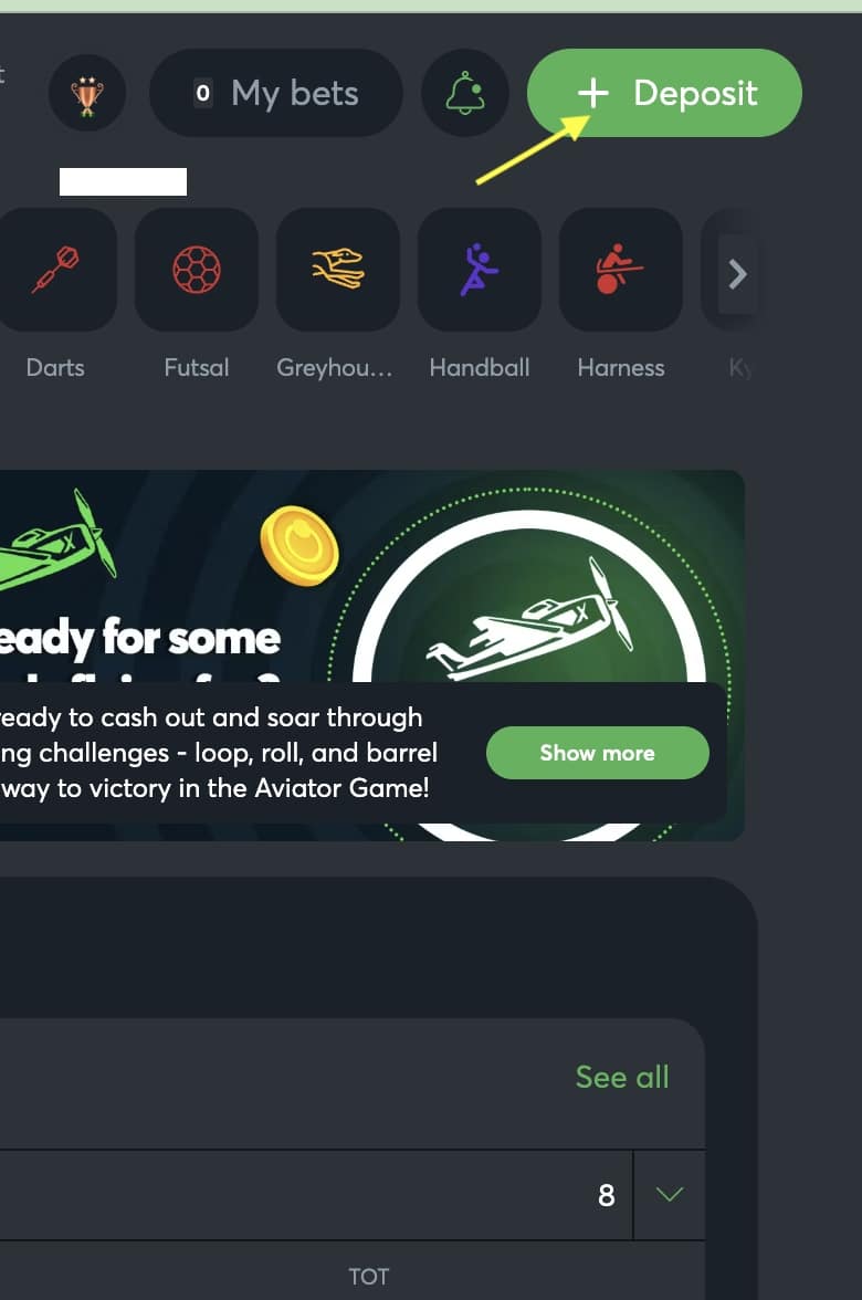 - Return to the Sportsbet.io homepage to see the deposited amount in your cashier