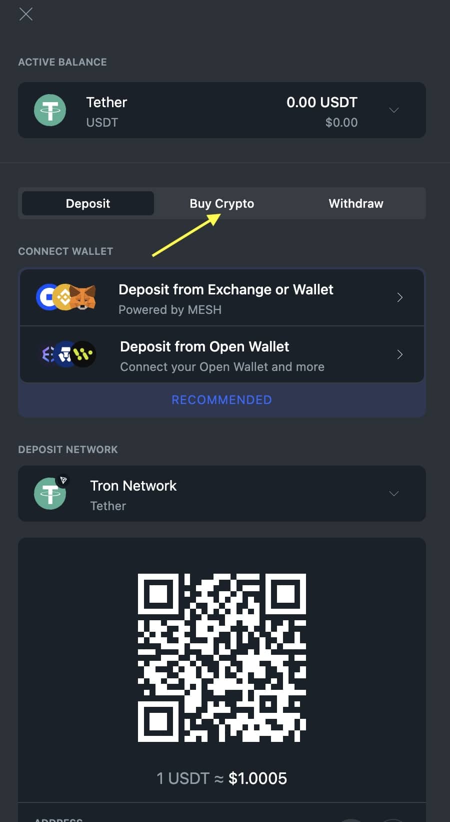 - Click "Buy Crypto."